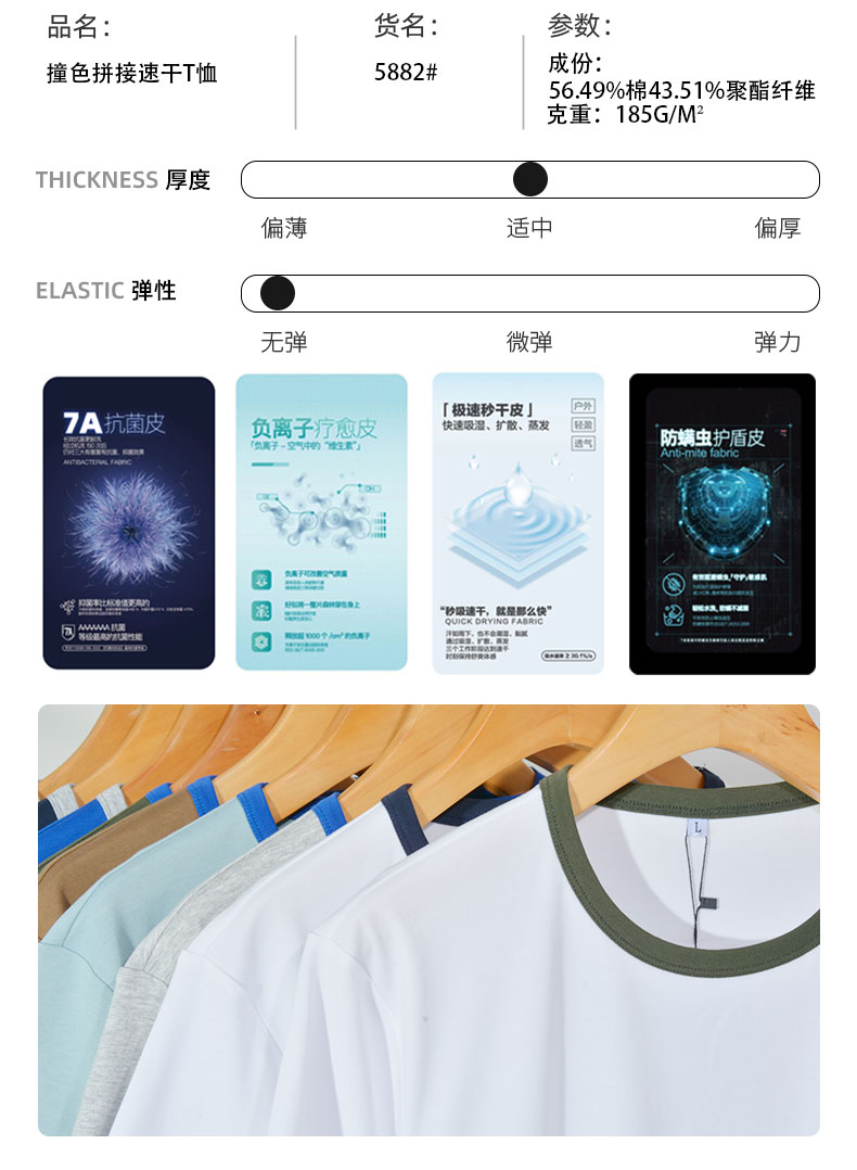 • 零感速干棉撞色T恤5882#